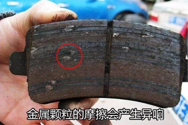 现在一些原厂刹车仍采用半金属材料,在磨损到一定程度时可能会出现分布不均的高硬度金属颗粒,当其遍布刹车片,你一脚刹车干下去,金属颗粒与刹车盘的异响就开始了。